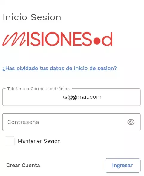 Al confirmar la creación de la cuenta será redirigido a la pantalla inicial, donde deberá ingresar su información de Inicio de Sesión que eligio en Crear Cuenta