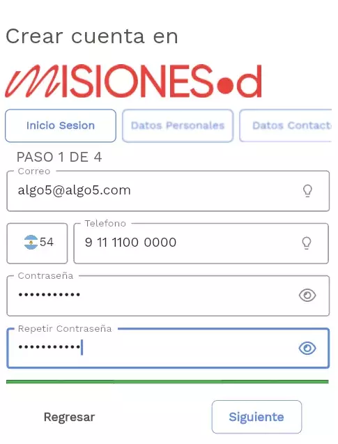 Asegúrese de ingresar un correo electrónico de su propiedad ya que el mismo será utilizado para comunicaciones oficiales y confirmaciones de seguridad. El correo electrónico debe contar con el simbolo @ y un final del tipo .com, .net, .com.ar o .org. para ser considerado válido.