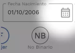 Para ingresar su fecha de nacimiento debera hacer clic en el icono del calendario, lo cual desplegará un calendario en pantalla que deberá usar para elegir su fecha de nacimiento