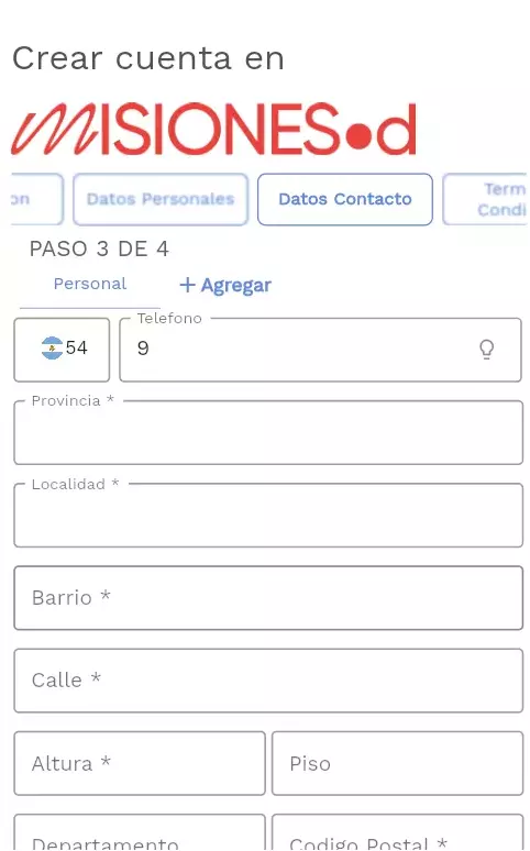 Si desea ingresar una Provincia, puede comenzar a escribir en el campo de texto e irán apareciendo las coincidencias para autocompletar el campo más rápido.